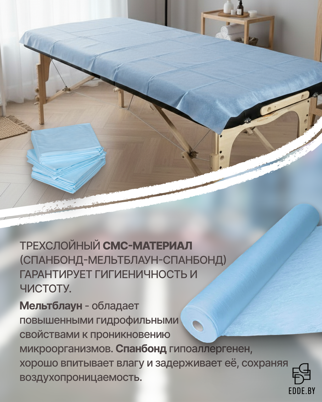 Одноразовые простыни в рулоне из СМС – это удобное и гигиеничное решение для медицинских учреждений, косметологических кабинетов и салонов красоты, обеспечивающее комфорт и защиту во время процедур.