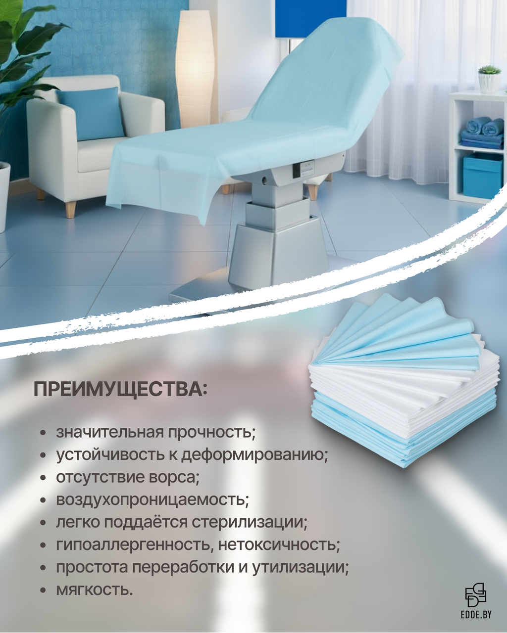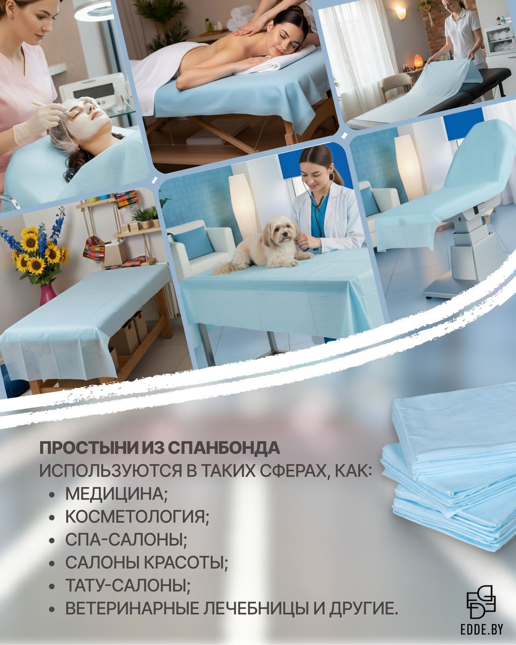 Одноразовые простыни в сложении из спанбонда – это удобное и гигиеничное решение для медицинских учреждений, косметологических кабинетов и салонов красоты, обеспечивающее комфорт и защиту во время процедур.