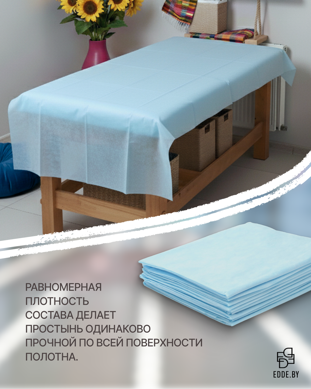 Равномерная плотность состава делает простынь одинаково прочной по всей поверхности полотна.