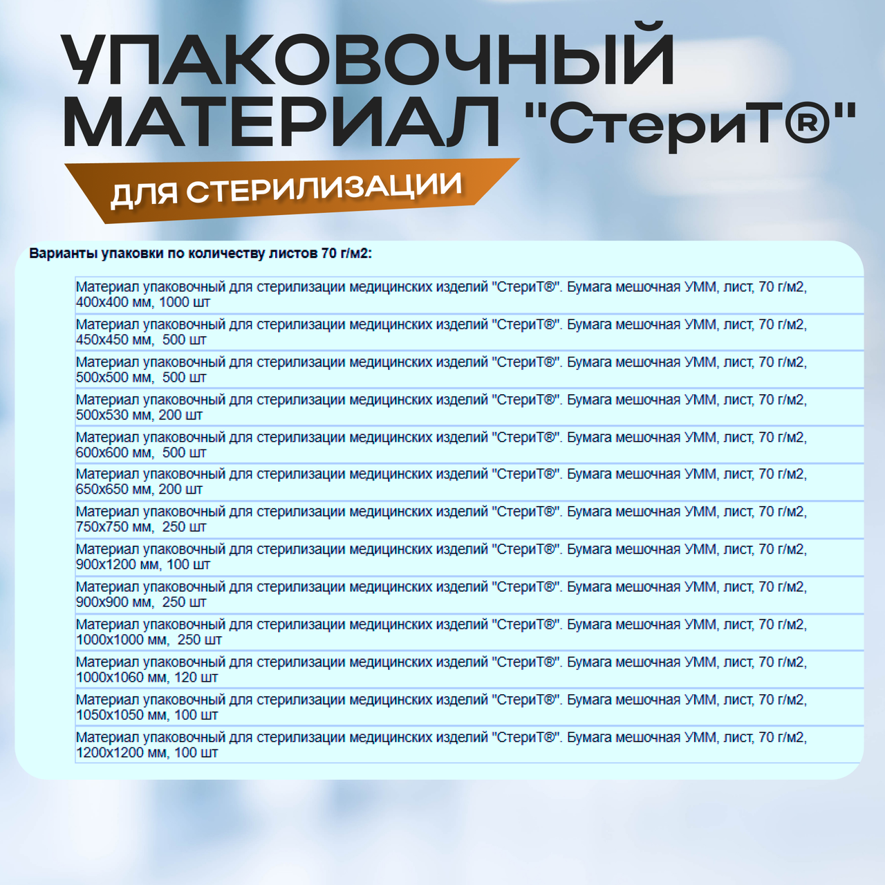 Материал упаковочный для стерилизации медицинских изделий "СтериТ®" 1000х1060мм. Бумага мешочная УММ, 120 штук